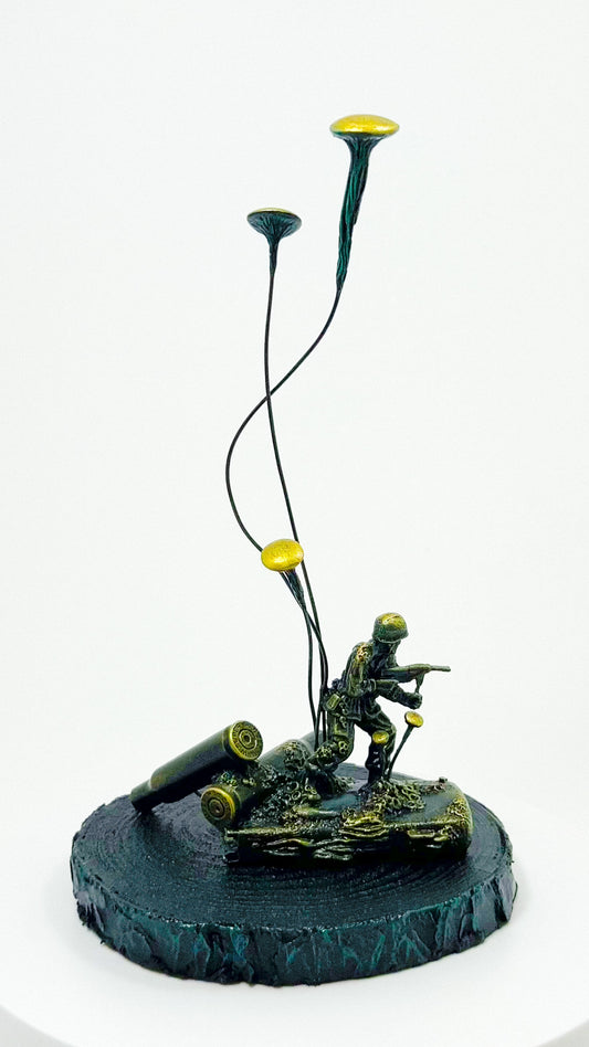 Metallic Spores of War – Green Army Man Fungi Sculpture